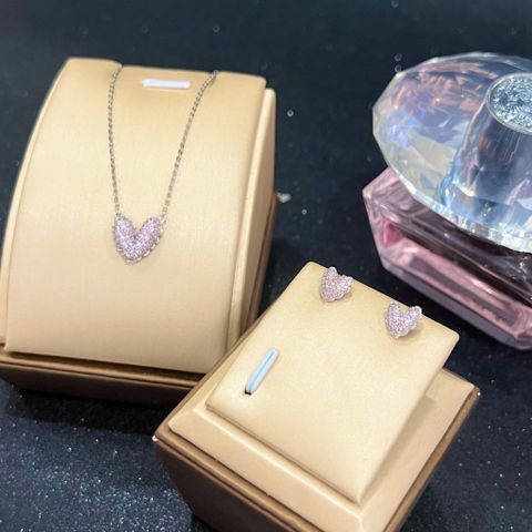 Bộ Trang Sức Bạc Cao Cấp - Dây Chuyền & Bông Tai Trái Tim Pha Lê Hồng (AF)
