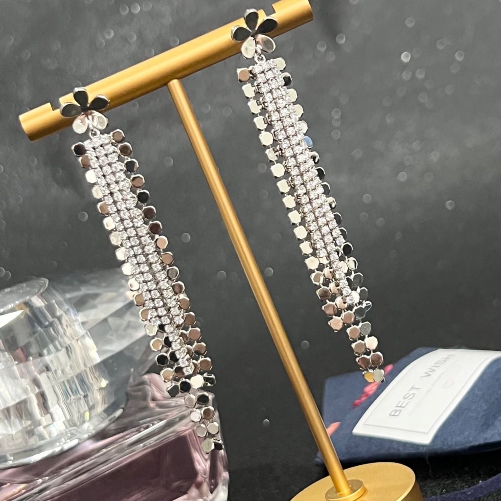 Bông Tai Cánh Hoa Tua Rua Pha Lê Trắng (AS)
