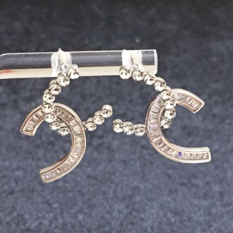 Bông Tai Chanel Bản To Màu Trắng Pha Lê (BQ)