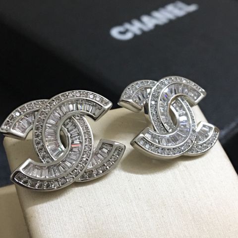 Bông Tai Chanel Bản To Màu Trắng Pha Lê (BU)