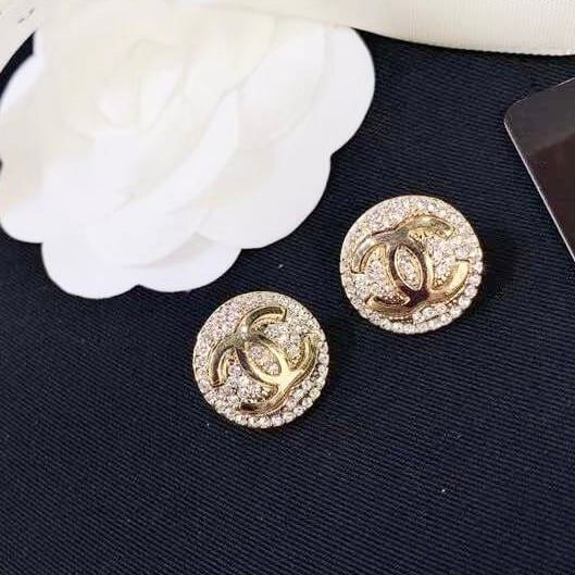 Bông Tai Chanel Bản To Màu Vàng Pha Lê Trắng (CJ)