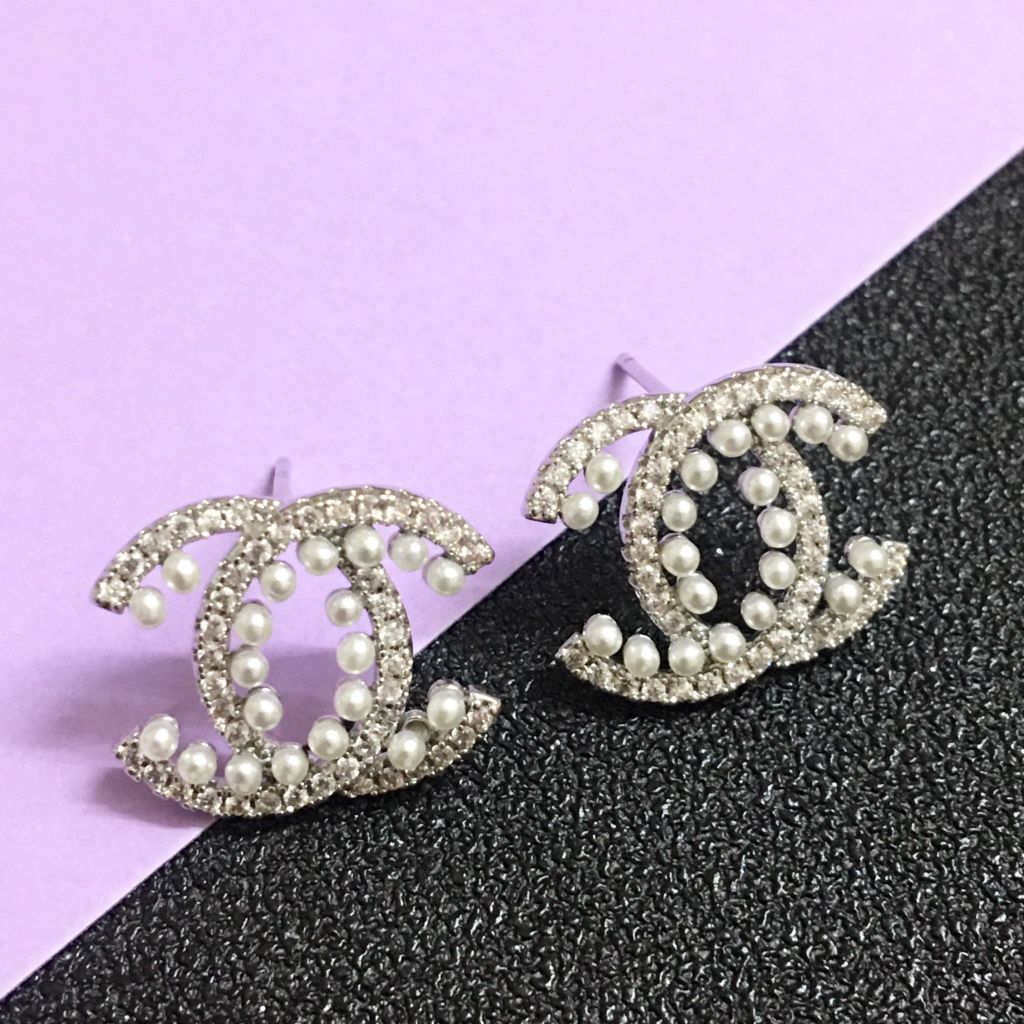 Bông Tai Chanel Màu Trắng Ngọc Trai & Pha Lê (AY)