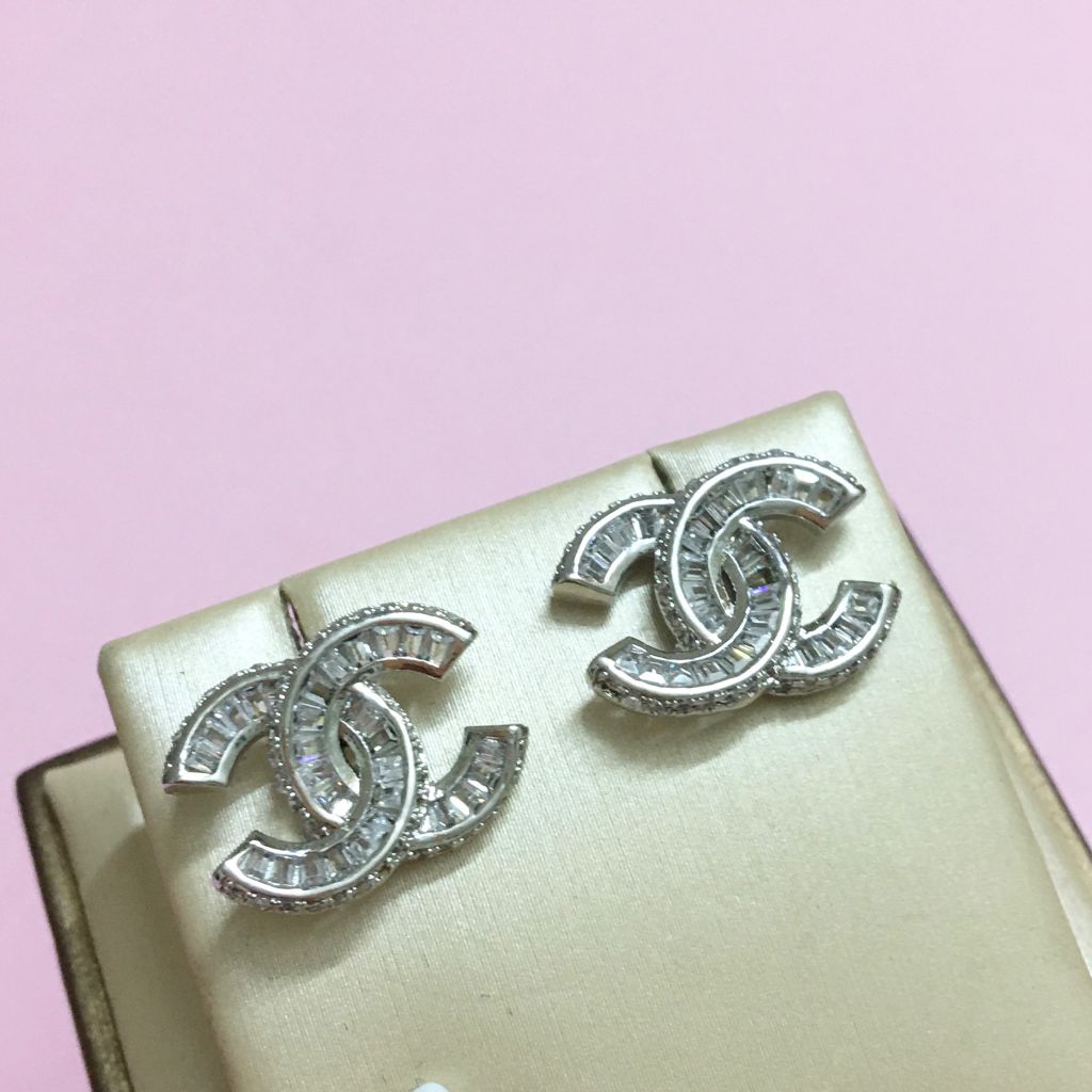 Bông Tai Chanel Màu Trắng Pha Lê (AQ)