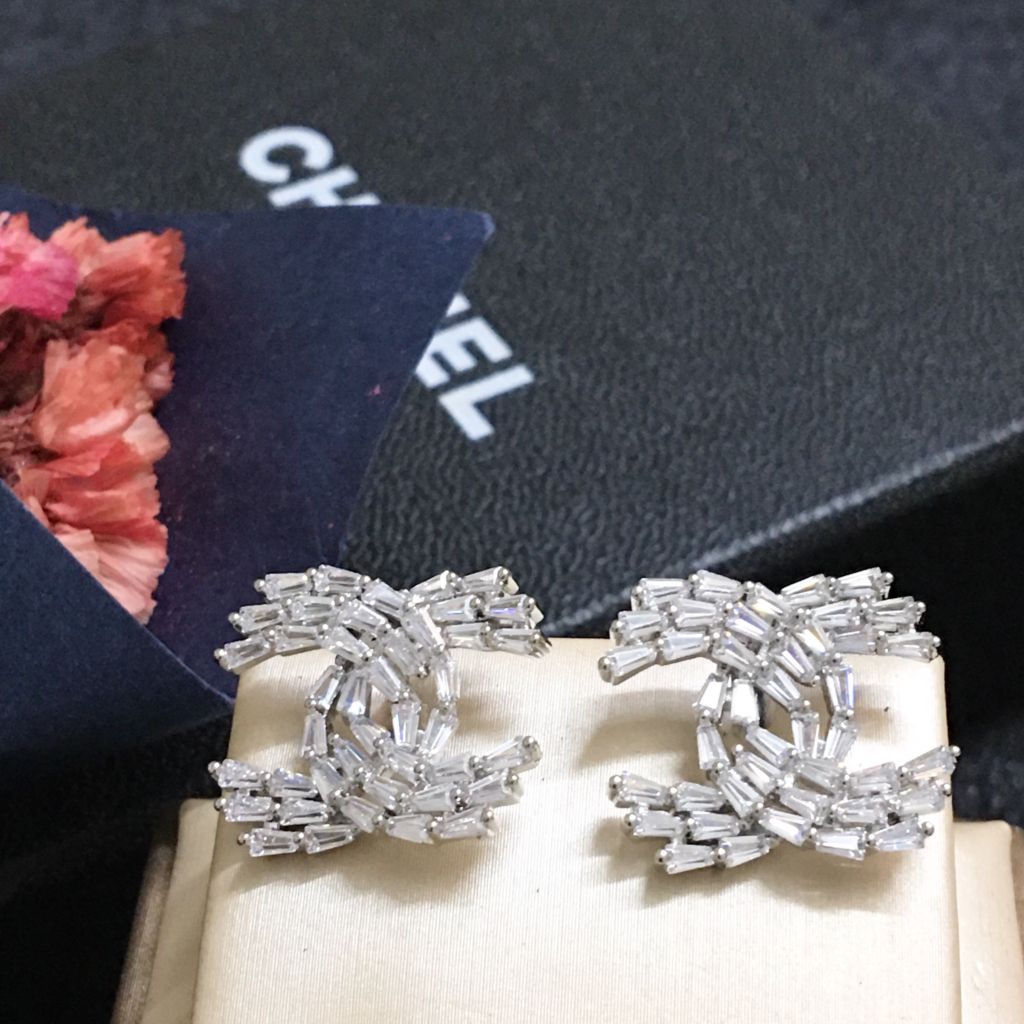 Bông Tai Chanel Màu Trắng Pha Lê (BP)