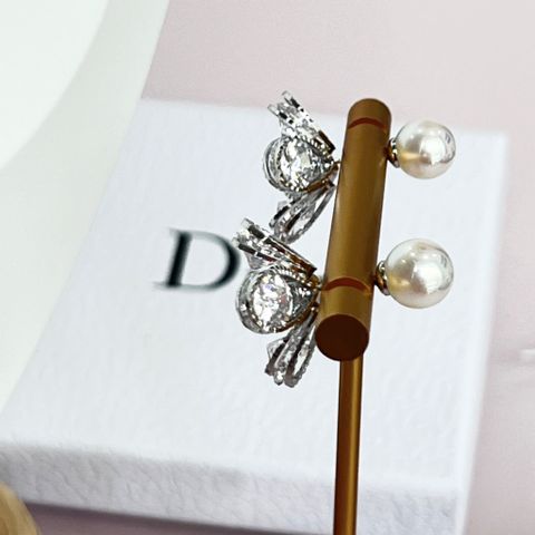 Bông Tai Dior Màu Vàng Ngọc Trai & Pha Lê Trắng (AF) - Có 3 Kiểu Đeo