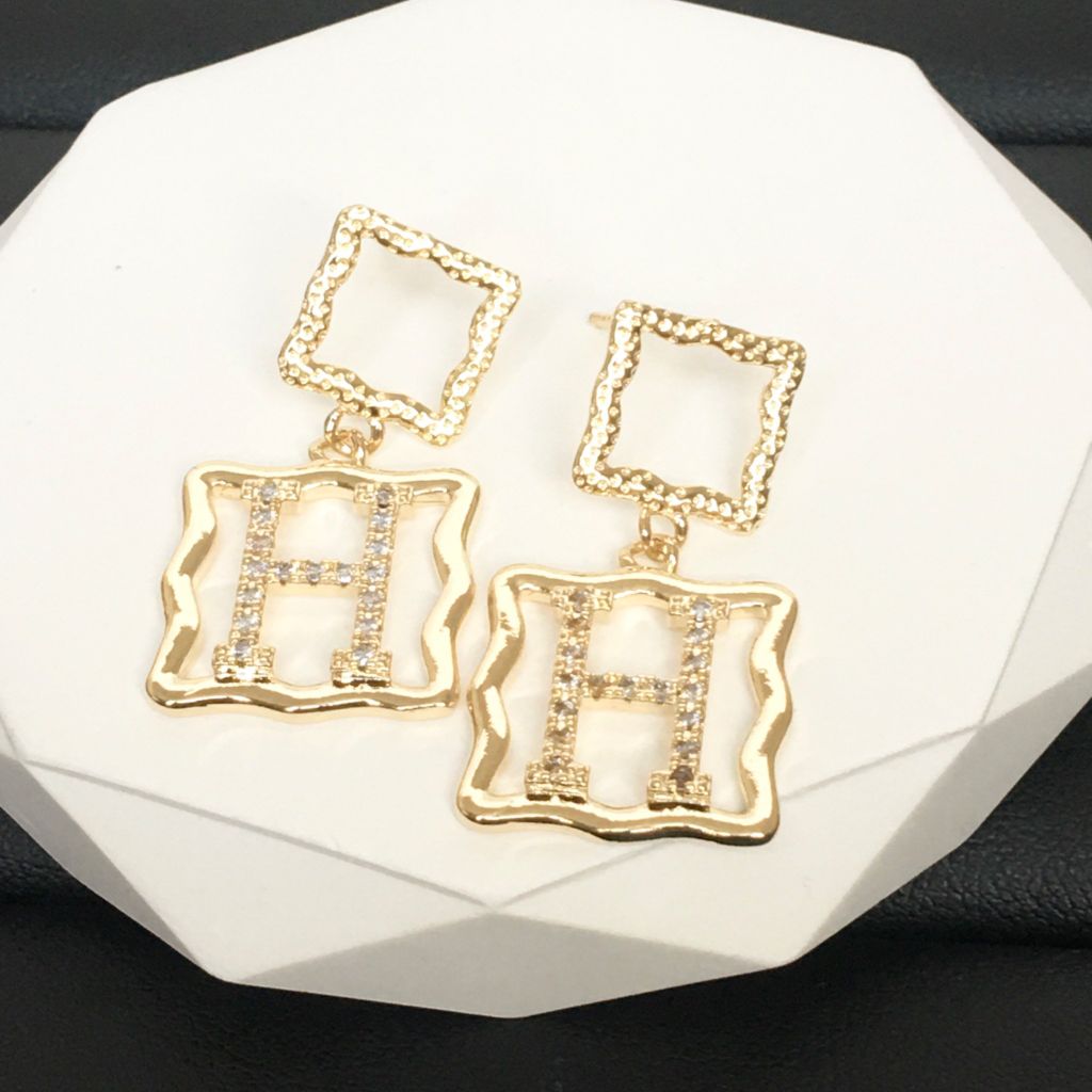Bông Tai Hermes Màu Vàng Pha Lê Trắng Sang Trọng (AP)