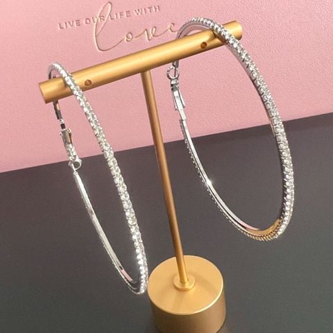Bông Tai Khoen Tròn Bản To Màu Trắng 6,3cm Pha Lê (BP)