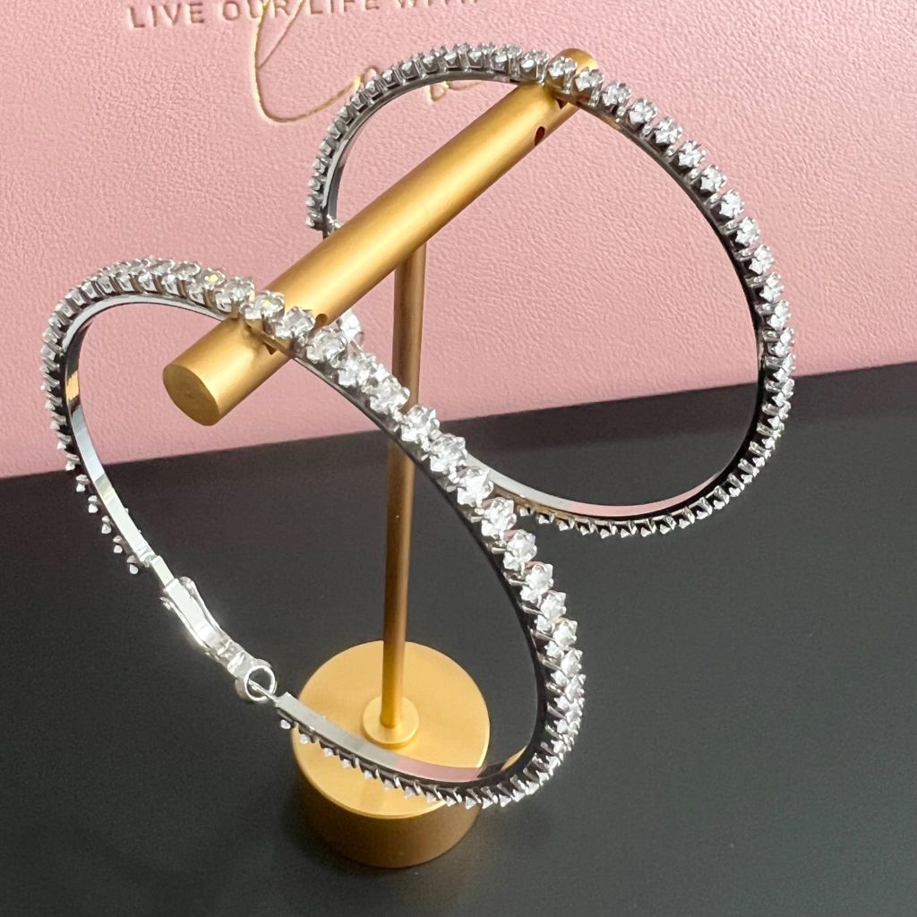 Bông Tai Khoen Tròn Bản To Màu Trắng 7,3cm Pha Lê (BO)