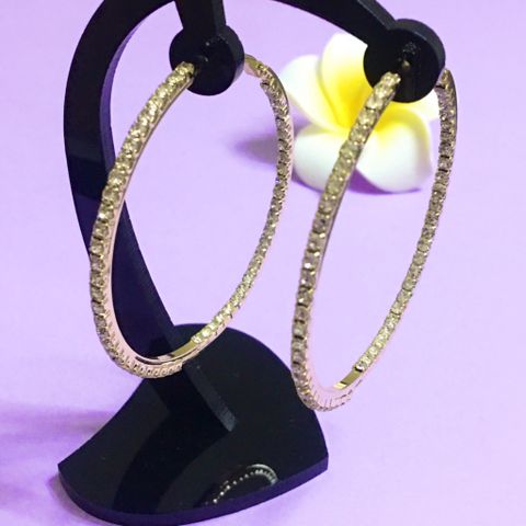 Bông Tai Khoen Tròn Màu Vàng 5cm Pha Lê Trắng (BB)