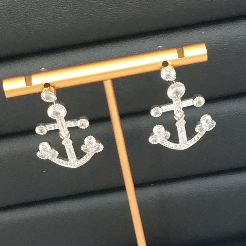 Bông Tai Mỏ Neo Pha Lê Trắng Cá Tính