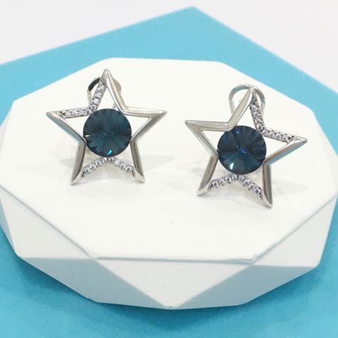 Bông Tai Ngôi Sao May Mắn Bản To Pha Lê Xanh Bích & Trắng (BH)