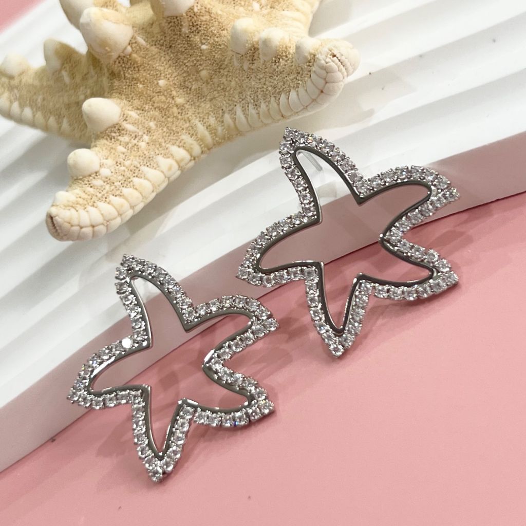 Bông Tai Sao Biển Bản To Pha Lê (AC)