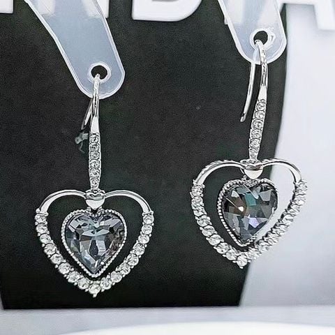 Bông Tai Trái Tim Pha Lê Đen & Trắng (AV)
