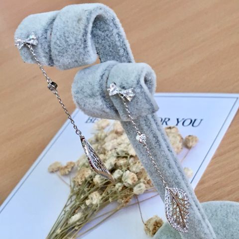 Bông Tai Tua Rua Chiếc Lá & Cái Nơ Pha Lê Trắng (AD)
