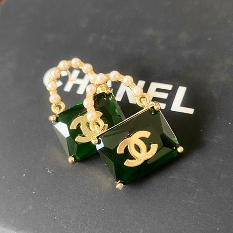 Bông Tai Túi Xách Chanel Bản To Màu Vàng Pha Lê xanh & Ngọc Trai (BV)