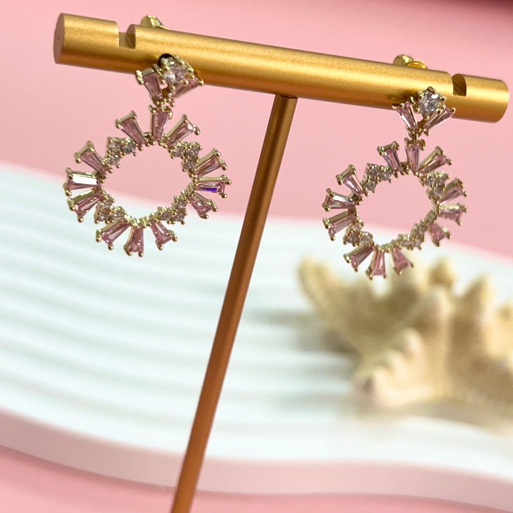Bông Tai Vòng Tròn Pha Lê Hồng