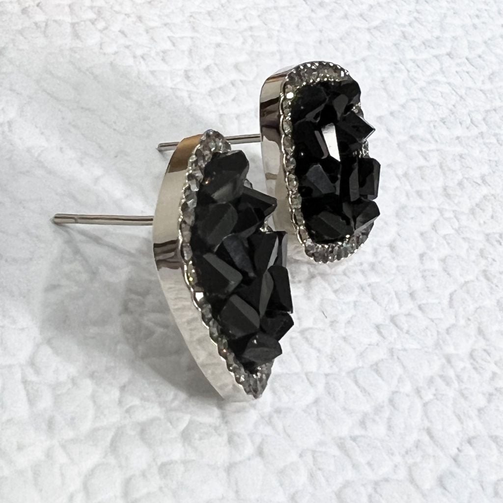 Bông Tai Vuông Bản To Pha Lê Đen & Trắng Sang Trọng