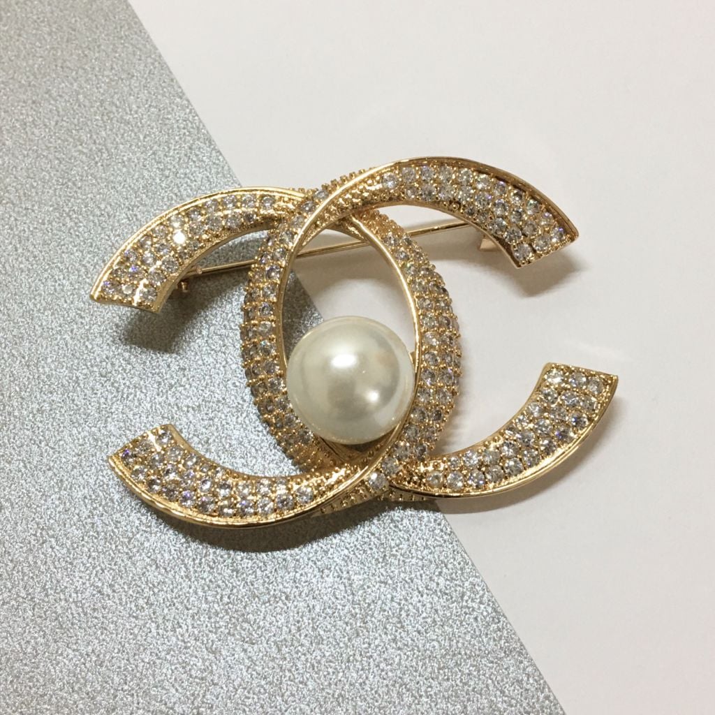 Cài Áo Chanel Màu Vàng Hồng Ngọc Trai & Pha Lê Trắng (AD)