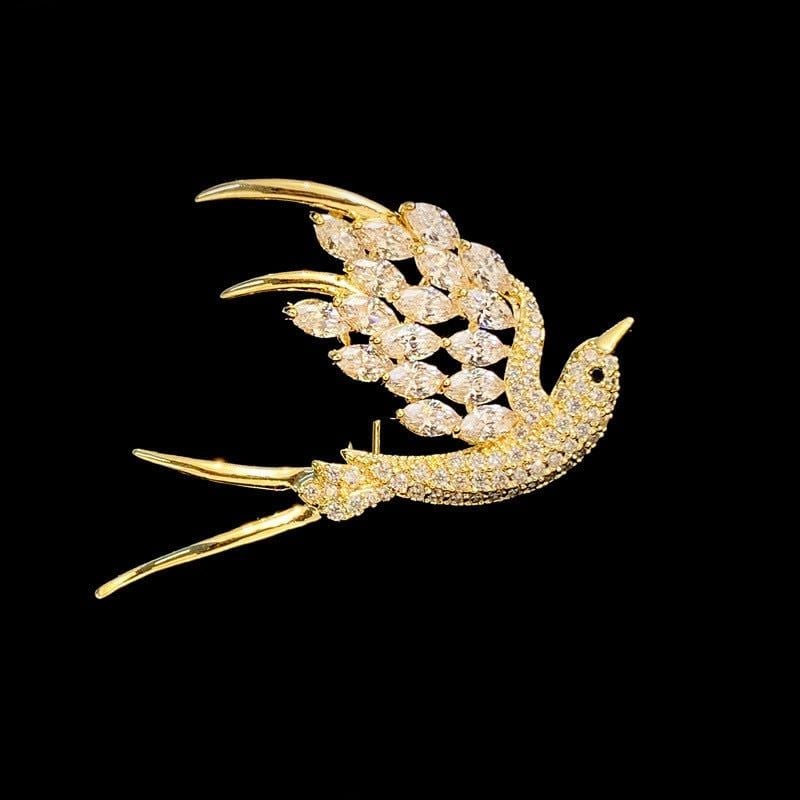 Cài Áo Chim Yến Màu Vàng Pha Lê Trắng Tinh Tế