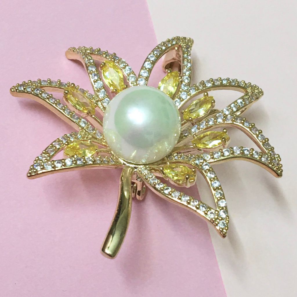 Cài Áo & Mặt Dây Chuyền - Chiếc Lá Đỏ Pha Lê Vàng & Ngọc Trai (AE)