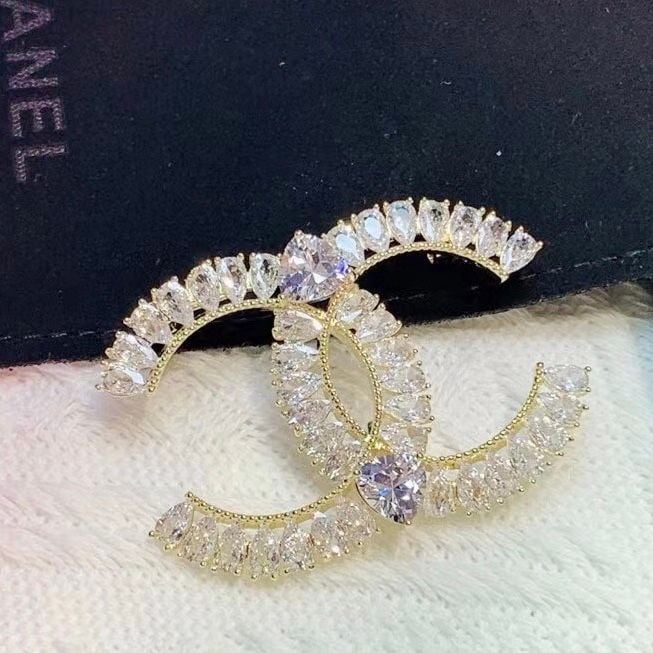 Cài Áo Nam, Nữ - Chanel Màu Vàng Pha Lê Trắng (CJ)