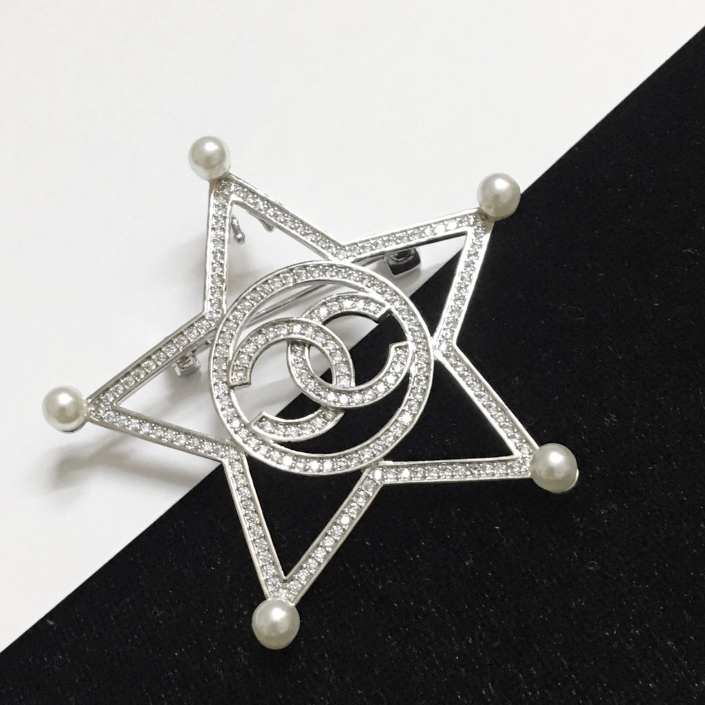 Cài Áo Nam, Nữ - Chanel Ngôi Sao Trắng Ngọc Trai & Pha Lê (BN)