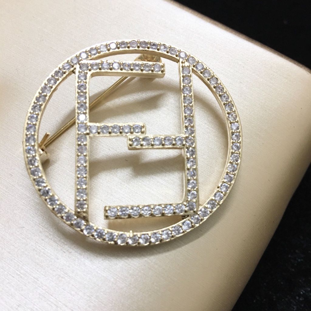 Cài Áo Nam, Nữ - Fendi Màu Vàng Pha Lê Trắng (AA)