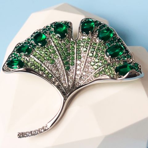 Cài Áo Nam, Nữ - Lá Sen Trắng Pha Lê Xanh & Trắng
