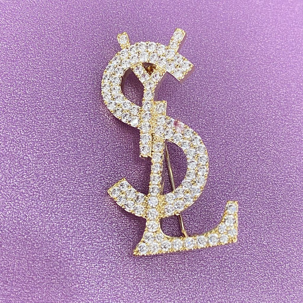 Cài Áo Nam, Nữ - YSL Màu Vàng Pha Lê Trắng (AF)
