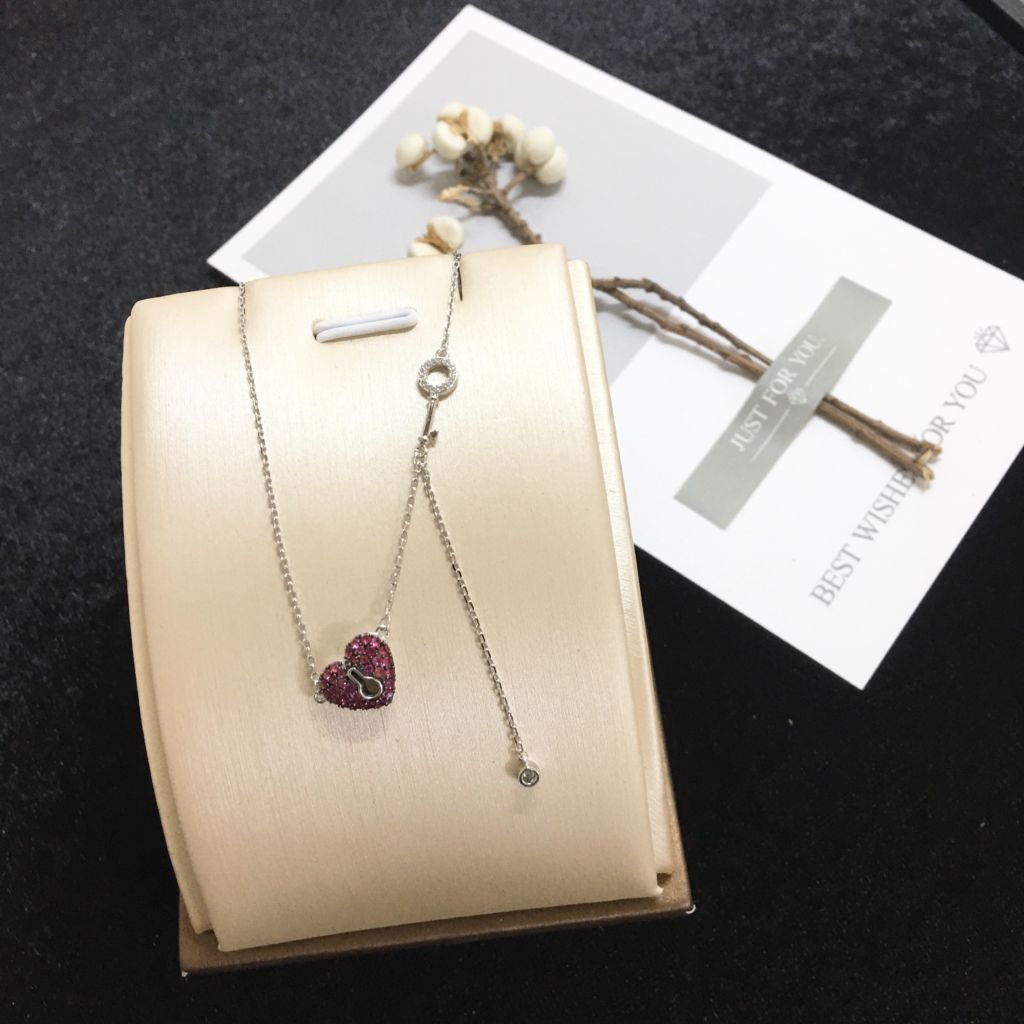 Dây Chuyền Bạc Cao Cấp - Ổ Khoá Trái Tim Pha Lê Đỏ