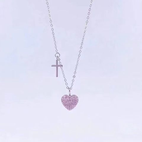 Dây Chuyền Bạc Cao Cấp - Thánh Giá & Trái Tim Pha Lê Hồng