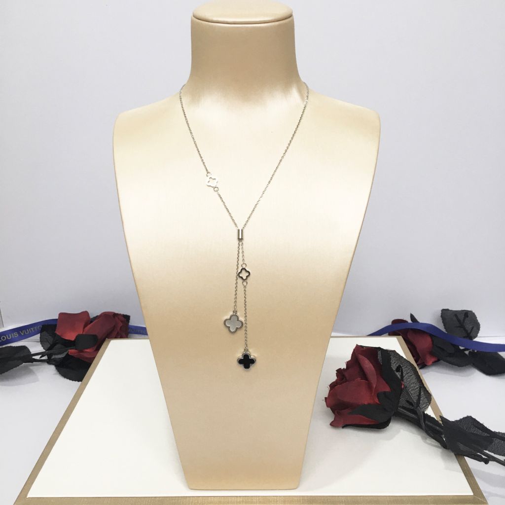 Dây Chuyền Titan Cao Cấp - Cỏ 4 Lá May Mắn Màu Trắng 2 Mặt Vỏ trai Thiên Nhiên (AM)