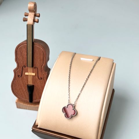 Dây Chuyền Titan Cao Cấp - Cỏ 4 Lá May Mắn Màu Trắng Đỏ (AQ)