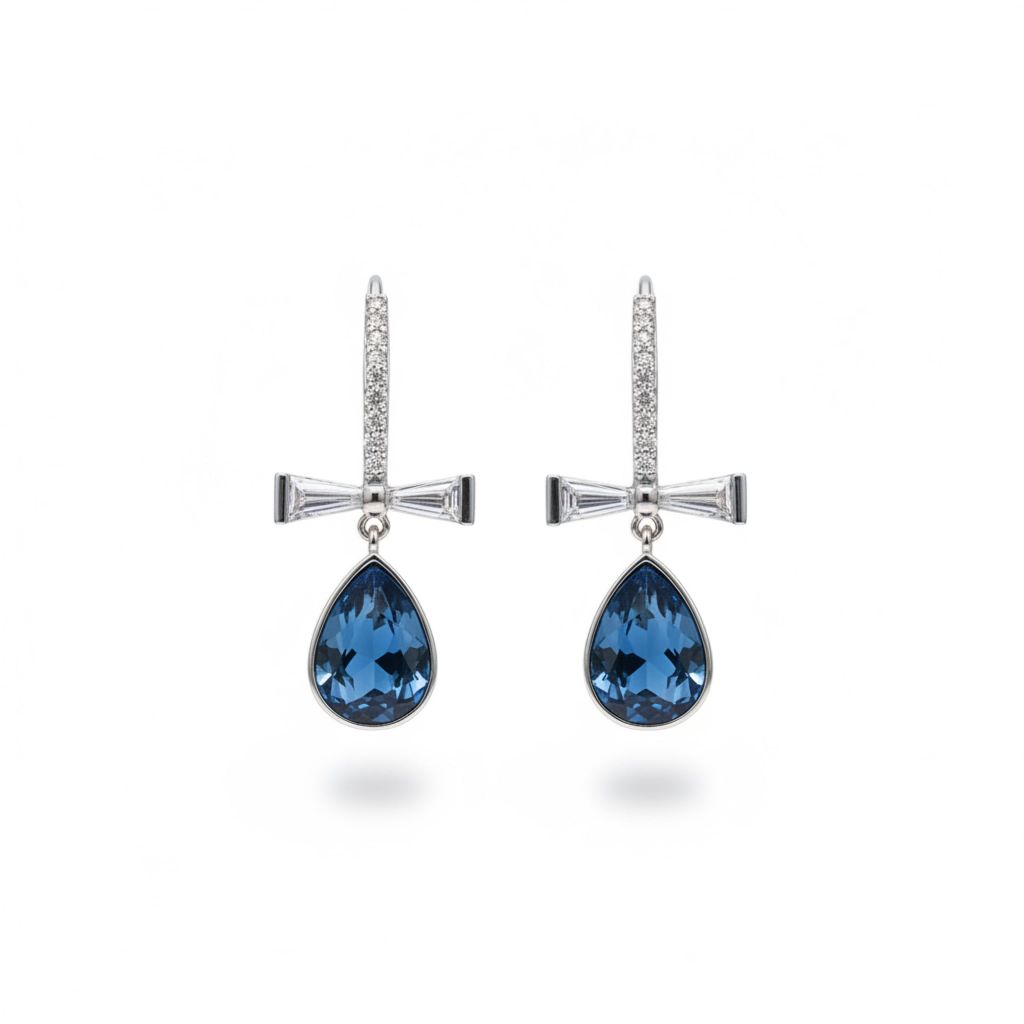 Khuyên Tai Cái Nơ & Giọt Nước Pha Lê Xanh Bích (AQ)