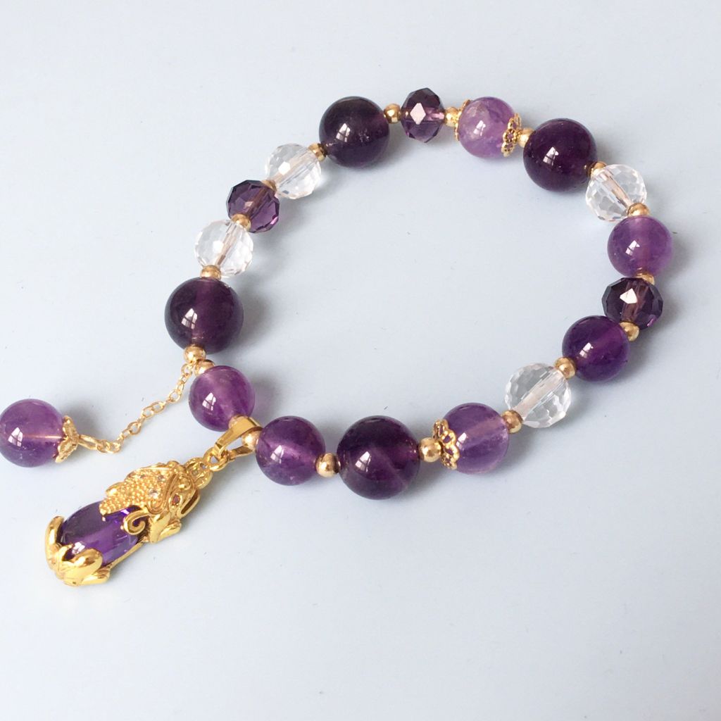 Vòng Đá Phong Thuỷ Cao Cấp - Con Tỳ Hưu Tài Lộc Thạch Anh Tím & Trắng Tự Nhiên