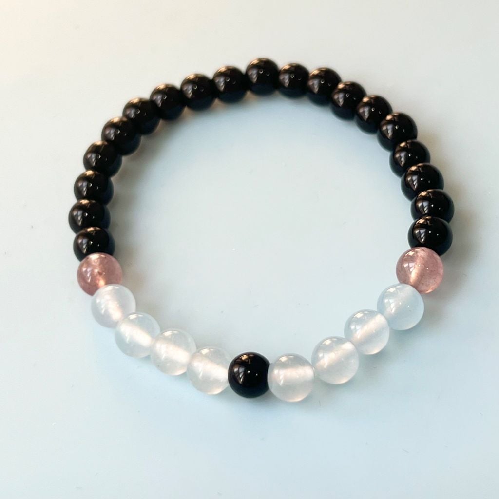 Vòng Đá Phong Thuỷ Cao Cấp - Đá Aquamarine, Đá Obsidian & Đá Thạch Anh Dâu Tây Tự Nhiên