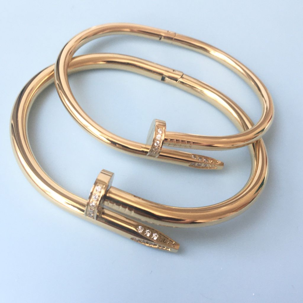 Vòng Tay Cặp Đôi Tình Yêu - Cartier Cây Đinh Màu Vàng Hồng Titan Cao Cấp Pha Lê (AC)