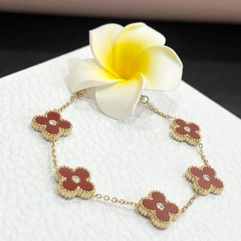 Vòng Tay TiTan Cao Cấp - Cỏ 4 Lá May Mắn Màu Đỏ 1,3cm Pha Lê (AG)