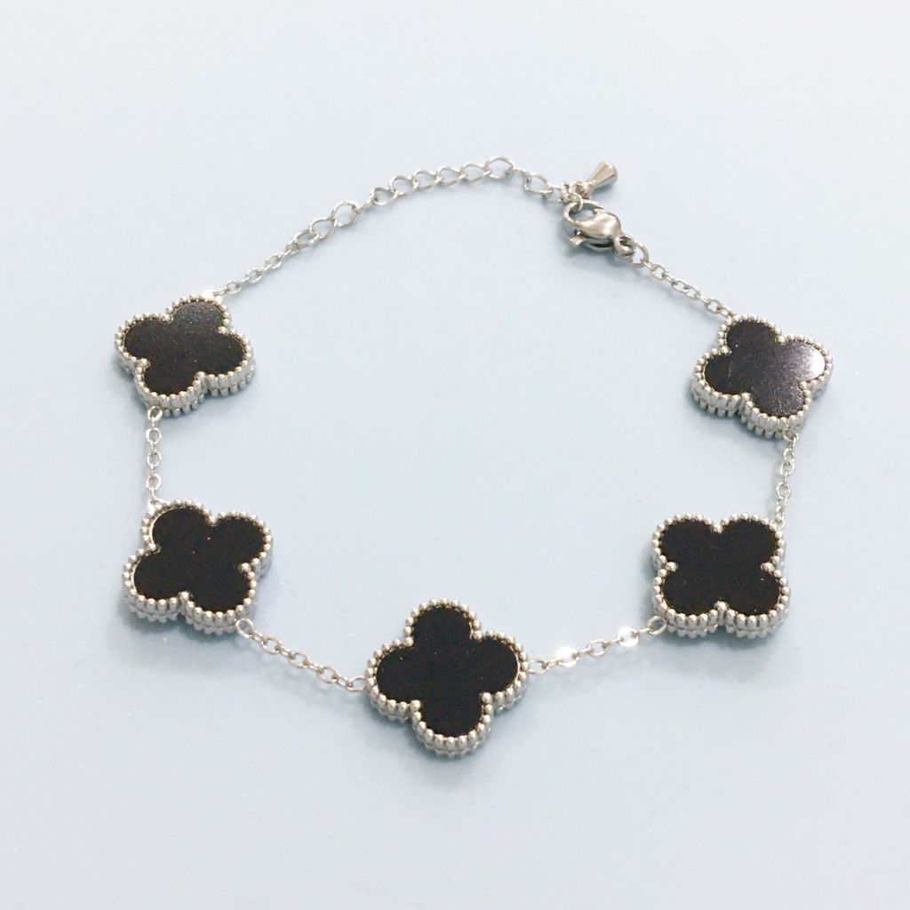 Vòng Tay TiTan Cao Cấp - Cỏ 4 Lá May Mắn Màu Trắng Đen 2 Mặt Pha Lê (AK)