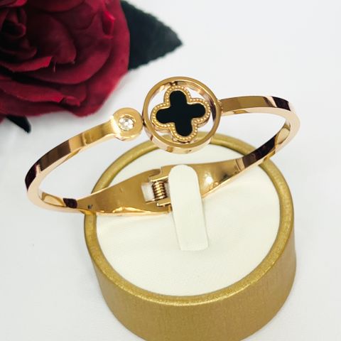 Vòng Tay TiTan Cao Cấp - Cỏ 4 Lá May Mắn Xoay 2 Mặt Đen & Trắng Pha Lê (AM)
